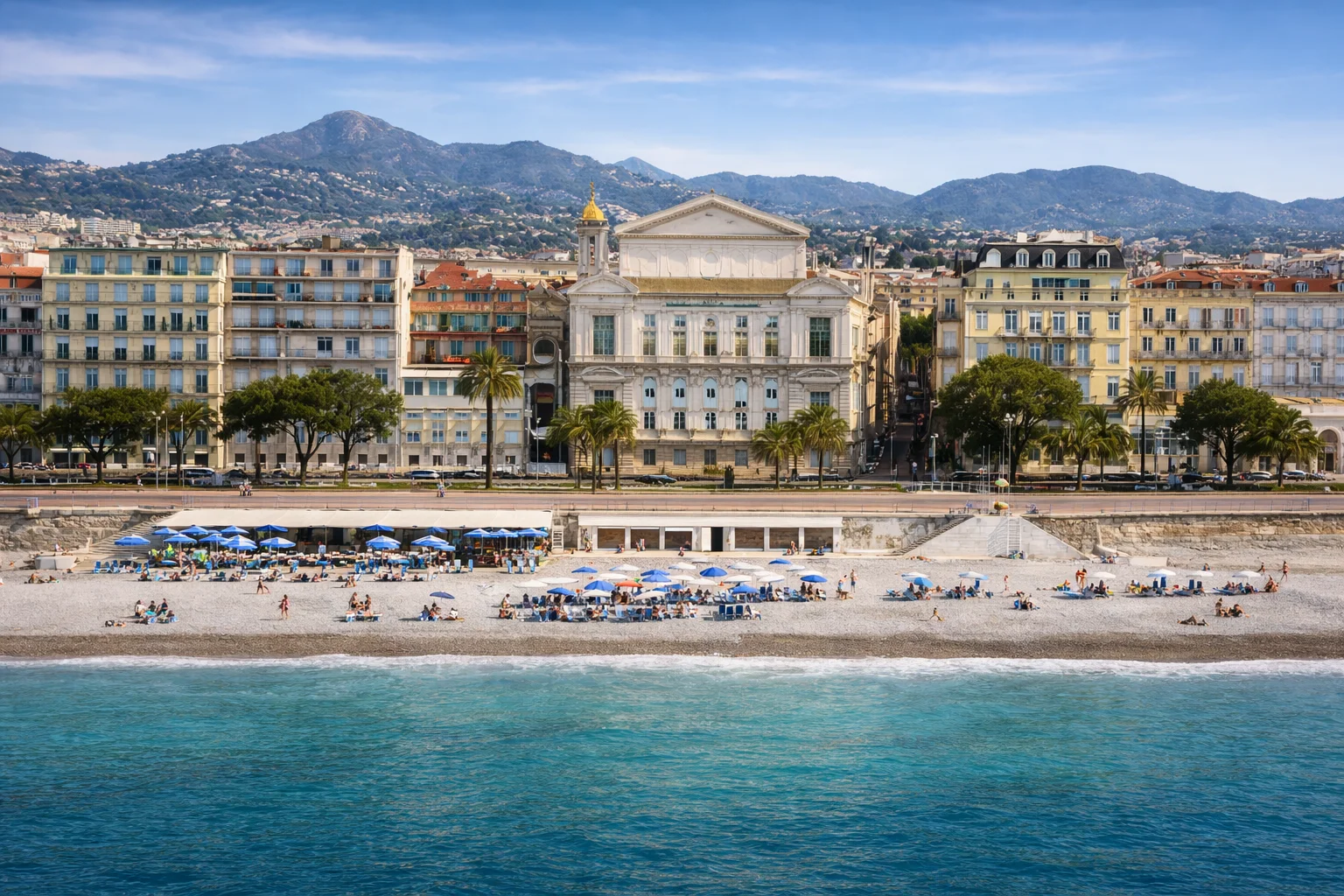C’est la plus ancienne de Nice — plus de 120 ans d’histoire — et aussi la plus grande. Face à l’un des plus beaux opéras de France, elle s’inscrit dans l’histoire vivante de la Promenade des Anglais et perpétue l’art de vivre balnéaire qui a fait la légende de la ville.
